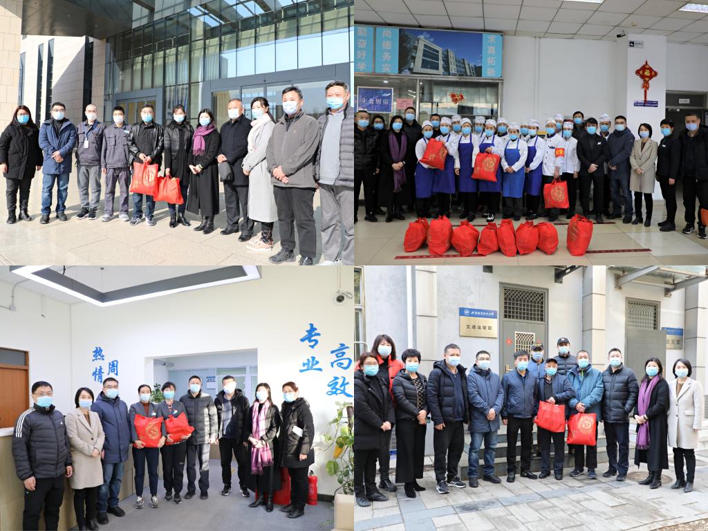 高常忠、肖洪等领导分别带队前往沙河校区的综合体育馆、主楼、客服中心、优购超市、食堂、学生公寓、锅炉房,学院路校区学一食堂、留学生公寓、社区物业服务中心、客服中心、优购超市、隔离观察区、培训餐厅、交通服务部、居委会等地,与在岗职工亲切交谈,详细了解假期值班值守情况,对一线职工在春节期间坚守岗位、保障各项工作平稳运行的工作热情和奉献精神表示感谢,并代表后勤保障处送上新春祝福,向大家拜年。