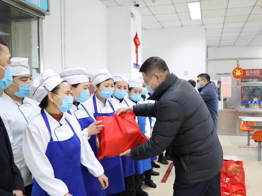 春节将至,岁寒情深。在2021年牛年春节即将来临之际,2月9日、10日上午,后勤保障处处长高常忠、后勤党委书记肖洪、副处长刘静巍、陈斌、甘海珍等处领导看望慰问了后勤春节期间在岗一线职工,送去新春的问候与祝福。综合办公室及相关部门的负责人陪同慰问。
