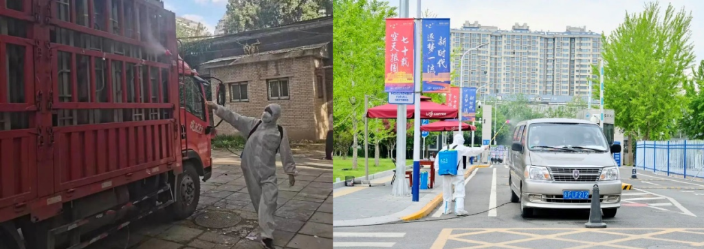 物业部门还负责各项消杀工作。在疫情期间,物业单位每日完成学院路校区81000多平米教科研办公楼宇的日常保洁和4次楼内消毒任务,以及体育馆核酸检测现场的每日彻底消毒任务;早7点到晚上8点对北门物流缓冲区、物品交换区进行消毒;垃圾站日均处理垃圾12吨,毕业季时已超 15吨。
