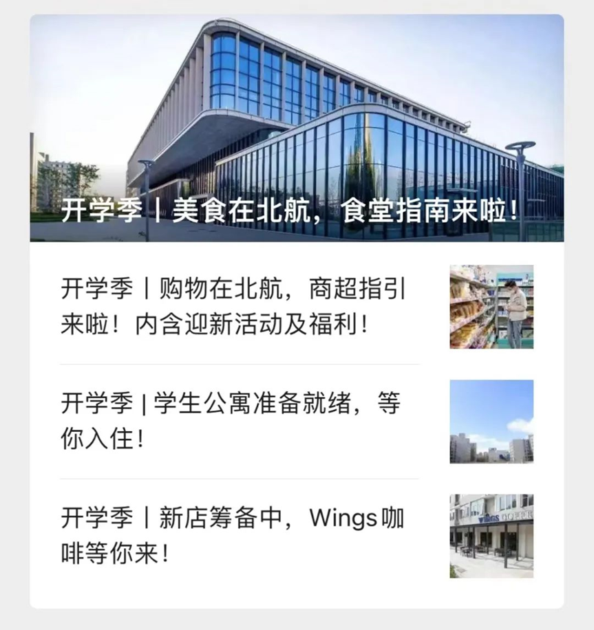 后勤保障处利用“北航生活”微信公众号发布迎新服务专题《开学季》系列推送,从衣食住行各个方面详细介绍北航后勤相关服务,帮助新生迅速适应新的学习生活环境。