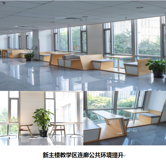 “给空间一抹色彩,给学子一份清新”,暑期后勤为新主楼3-6层教学区连廊公共环境配备了新的家具,为把北航真正建设成为同学们心中理想的“我的大学”做了后勤人的努力。