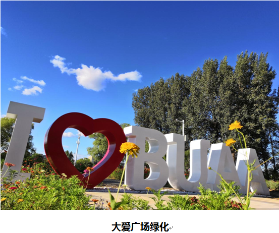 为努力建设宜居、宜学、绿色的一流大学校园环境,致力于让师生的幸福感、获得感与学校发展同步提升,暑期后勤集中力量提升北航整体校园环境,为新生报到送上温馨的“见面礼”。学院路校区集中整理改造绿化用地1000余平方米,拔杂草6000余平方米,种植草坪120余平方米,各种花卉近4000余株。沙河校区24000平方米精品园绿化,37600平方米大爱广场绿化,校训石广场的绿化工程均完成……正张开怀抱期待每一位新生的到来。