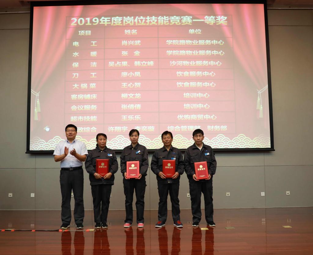后勤保障处陈斌副处长宣读了《关于表彰2019年度岗位技能竞赛获奖员工的决定》。后勤对在竞赛中取得优异成绩的员工进行表彰,同时授予各竞赛项目一等奖获得者“后勤2019年度岗位能手”称号。