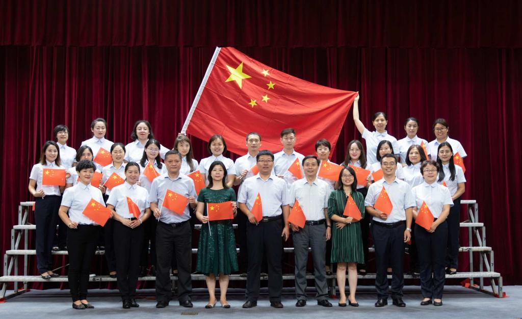 活动在庄严的国歌声中拉开帷幕,随后全体人员共同观看了《我为祖国献歌》视频。镜头记录了在普通岗位上辛勤工作、默默奉献的后勤职工唱响《歌唱祖国》的瞬间,歌声饱含着每一位后勤人对于祖国母亲的热爱。