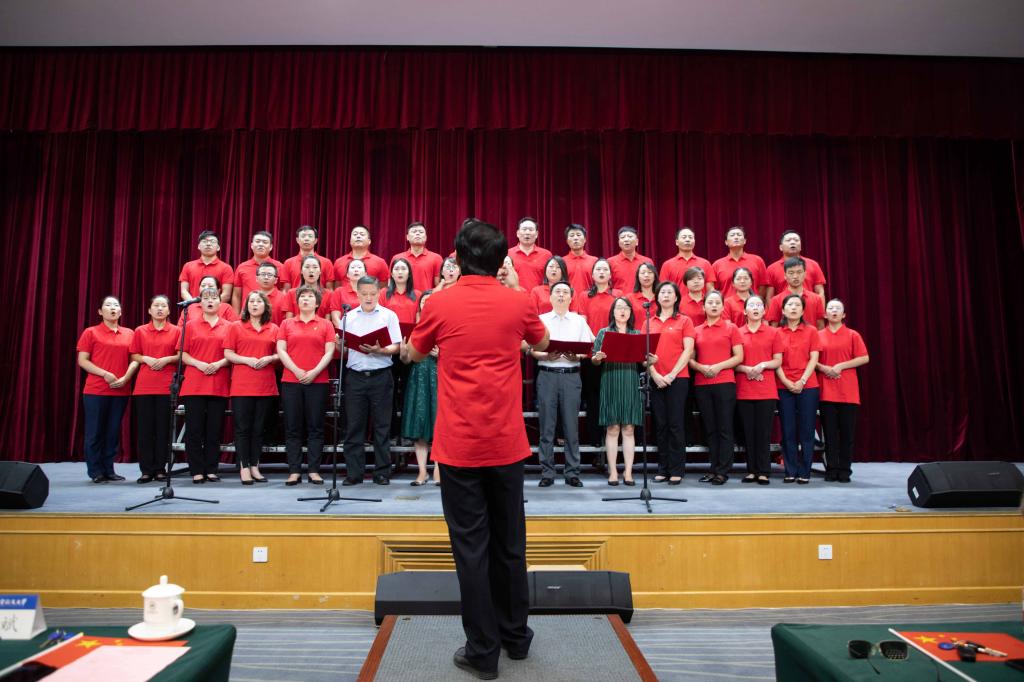 合唱汇演正式开始,7支合唱队伍陆续登台献歌。后勤保障处班子成员深情朗诵《祖国,我爱你》,与后勤机关、优购行政员工合唱《我们走在大路上》,熟悉的旋律让我们仿佛又回到了那段峥嵘岁月。《我的中国心》、《中国中国鲜红的太阳永不落》、《没有共产党就没有新中国》等一首首耳熟能详的歌曲,不断唱响在报告厅里,在座的每一位后勤职工都心情澎湃。合唱汇演在全体人员《歌唱祖国》的歌声中达到了高潮,大家共同挥动着手中的国旗,表达着对伟大祖国的热爱和祝福。