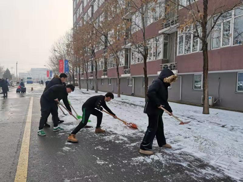 2020年的第一场大雪,使沙河校区银装素裹,但是也给老师和同学们的出行带来了极大的不便。此次降雪量大,持续时间长,雪后降温导致路面湿滑结冰。单单依靠保洁人员,无法完成扫雪铲冰工作,沙河物业服务中心号召全体员工,全部投入到扫雪战斗中来。他们挥舞着手中的铁锹、雪铲、扫把,对公寓、教学、实验楼、主楼、食堂周边重点路面进行清理,经过紧张有序的努力,终于将路面上的积雪清理干净。杜绝了安全隐患的发生。