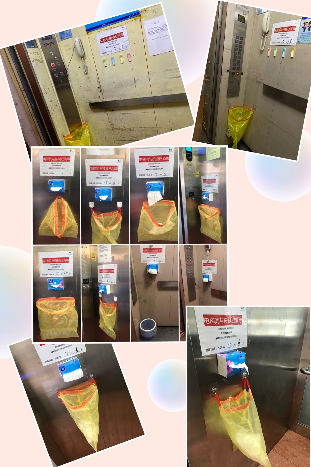 借鉴同业防疫先进经验,选取五栋楼共18部电梯作为试点,设置电梯按键纸,预防病毒传播。2月12日,全社区85部电梯全部放置按键防护纸。