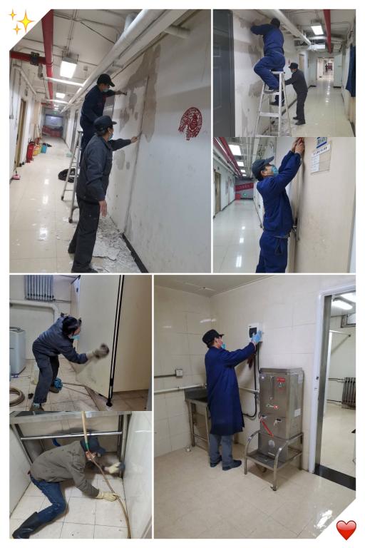 开始对地下空间员工宿舍(学2、学10、107北、107西、108)公共区域环境进行全面维修、清理。水房、公共淋浴间、卫生间等进行细保洁,今后每月进行一次全面保洁;对双航宿舍大厅进行装修。
