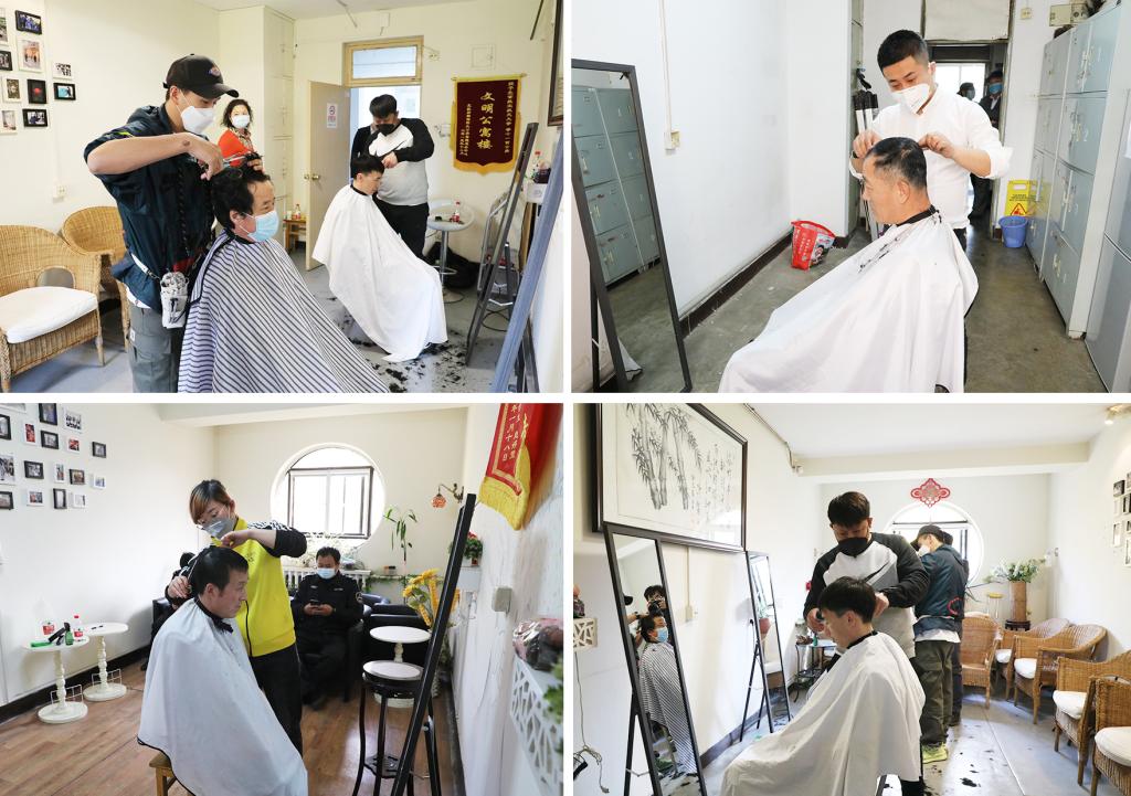 王鹏校友联系在京的理发师来到校园为后勤员工提供免费理发服务