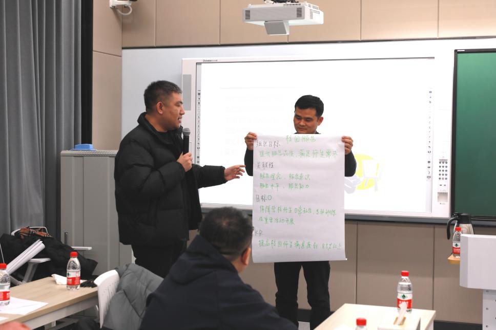 为了让大家更好地理解OKR的实际操作,培训安排了分组讨论环节。各组结合后勤工作和自身职责,分别就饮食、运行、校园服务、人员队伍建设、成本核算等五个方面OKR目标和关键结果的设定展开了热烈讨论。讨论结束后,每组推选代表对本小组讨论结果进行汇报展示,并对实现OKR目标的途径进行了深入思考。