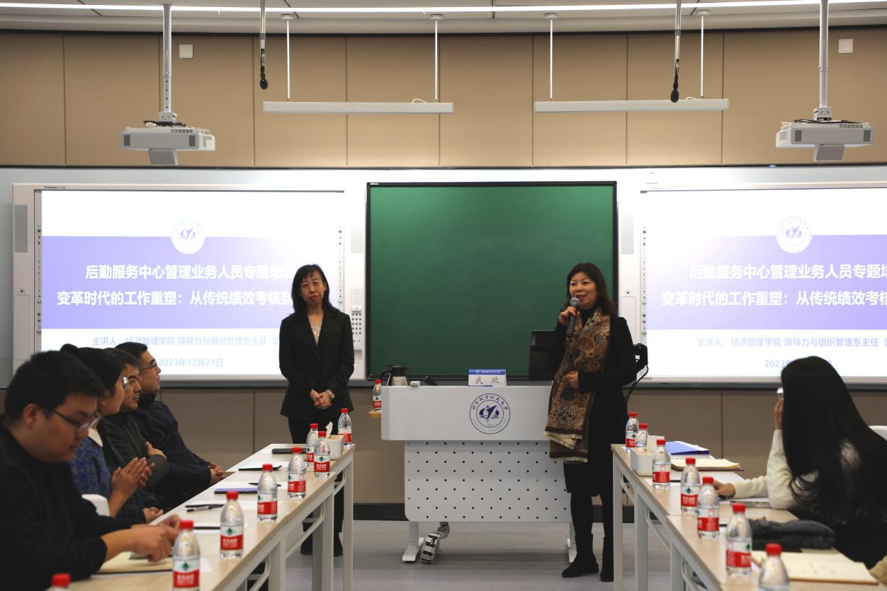为提升后勤服务中心管理水平,掌握科学管理办法的底层逻辑,12月21日下午,后勤服务中心邀请经济管理学院领导力与组织管理系主任武欣副教授对后勤管理业务人员开展人力资源与领导力专题培训。后勤服务中心领导班子、各部门部长、副部长及管理业务人员共30余人参加本次培训。培训由后勤服务中心党委副书记、副主任刘静巍主持。