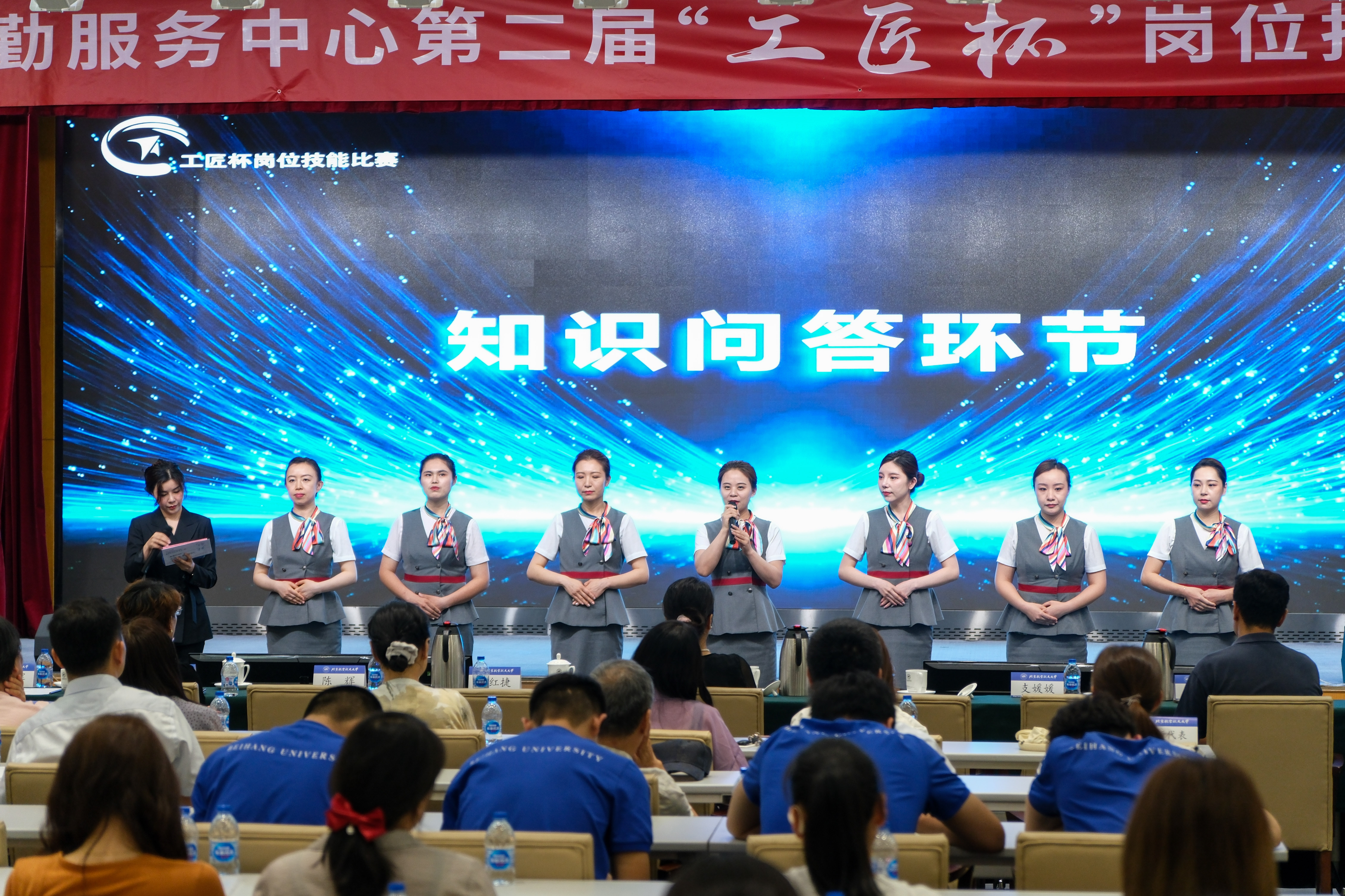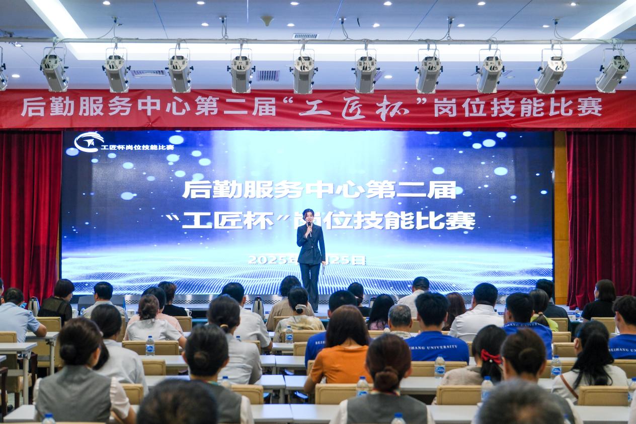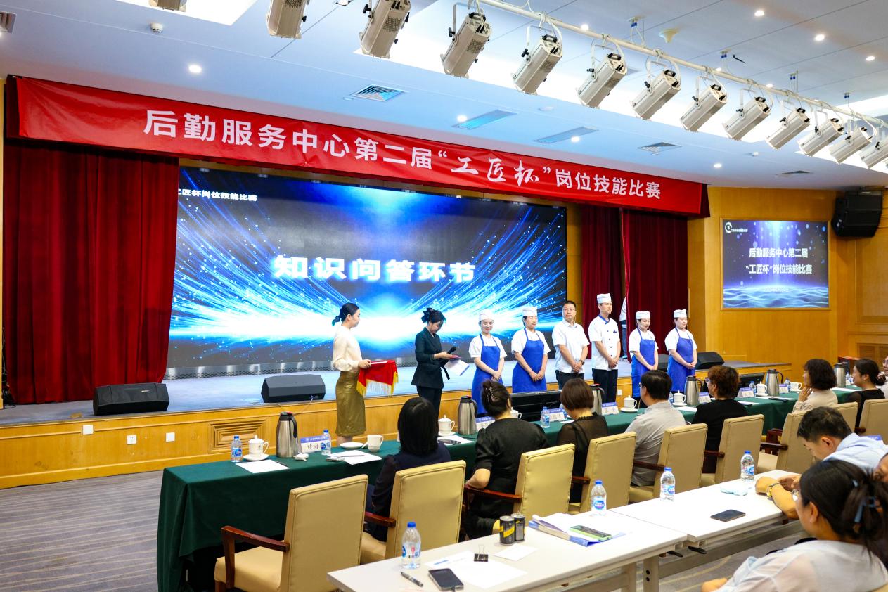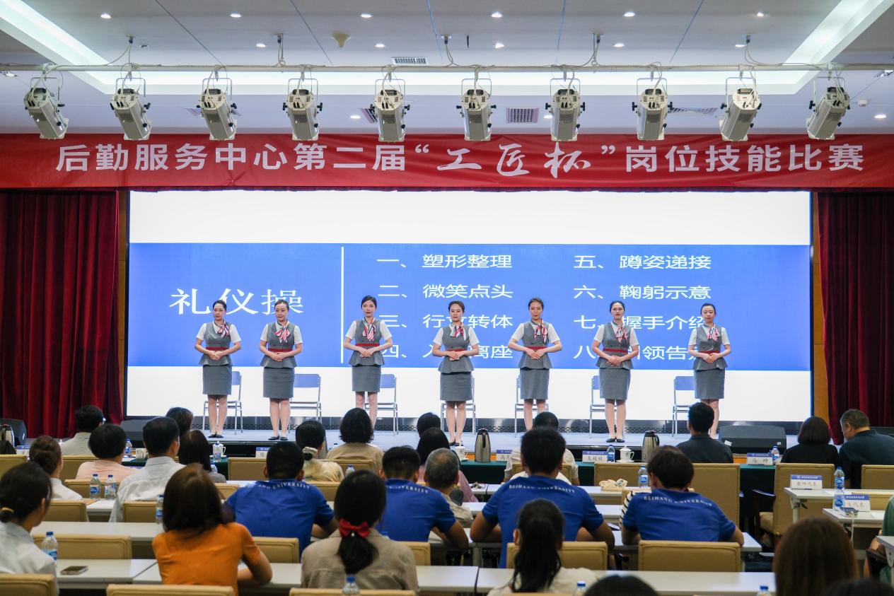 为大力弘扬劳模精神、劳动精神、工匠精神,整体提升后勤服务质量,6月25日下午,后勤服务中心第二届“工匠杯”岗位技能比赛在如心会议中心成功举办。本届比赛以“服务质量”为关键词,以赛促练、以赛促训,着力于提升后勤员工的服务意识、服务态度、服务能力,创新采用了“情景展示+知识问答”模式进行展示。来自校工会、党委宣传部、总务部、学生中心、教师发展中心、新媒体艺术与设计学院、高研院、后勤服务中心的相关负责人莅临现场观摩指导,比赛邀请到人文社会科学学院孙锦露老师主持,现场师生代表和后勤一线员工代表共计130余人齐聚一堂,共同见证参赛员工的专业风采。