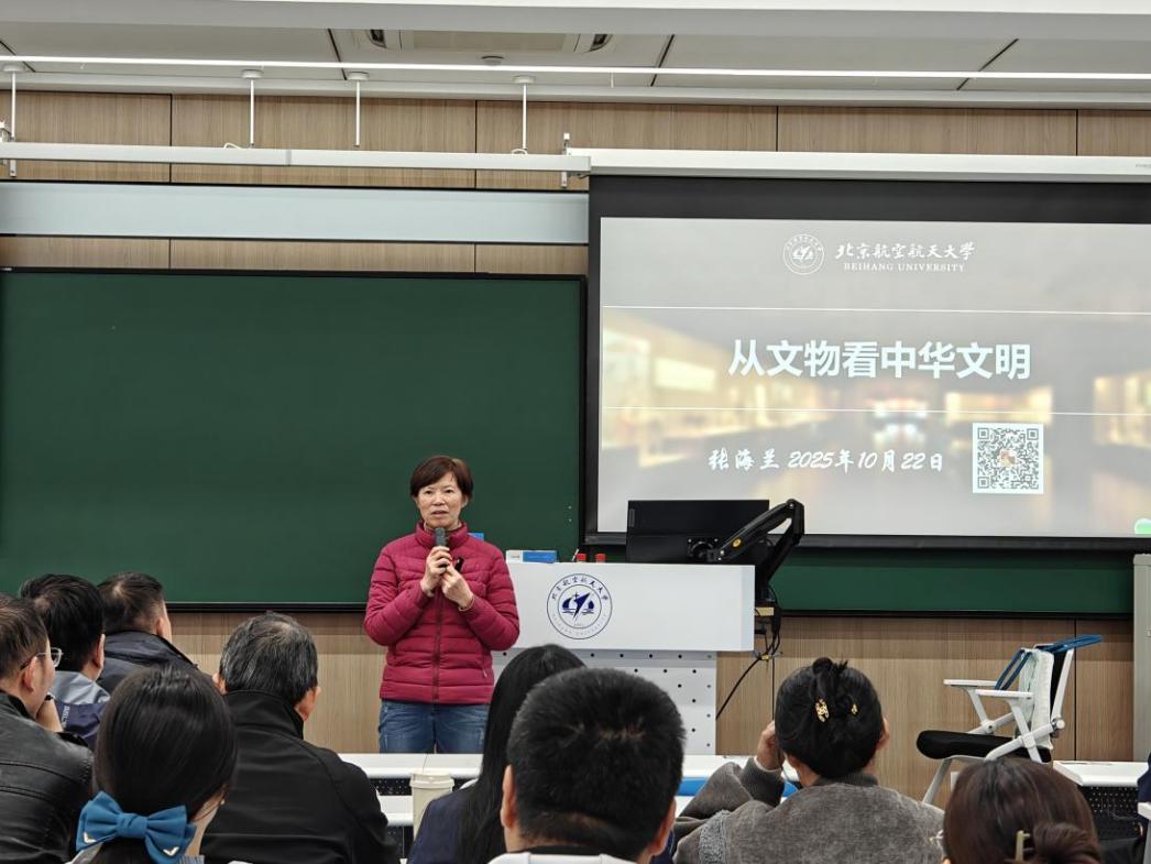 为深入学习贯彻习近平文化思想,认识中华文明,增强文化自信,10月22日,校务委员会副主任张海兰在主楼109教室讲授“从文物看中华文明”党课。后勤服务中心、资产与实验室管理处、保密部共68名党员参加。党课由后勤服务中心党委书记、主任高常忠主持。