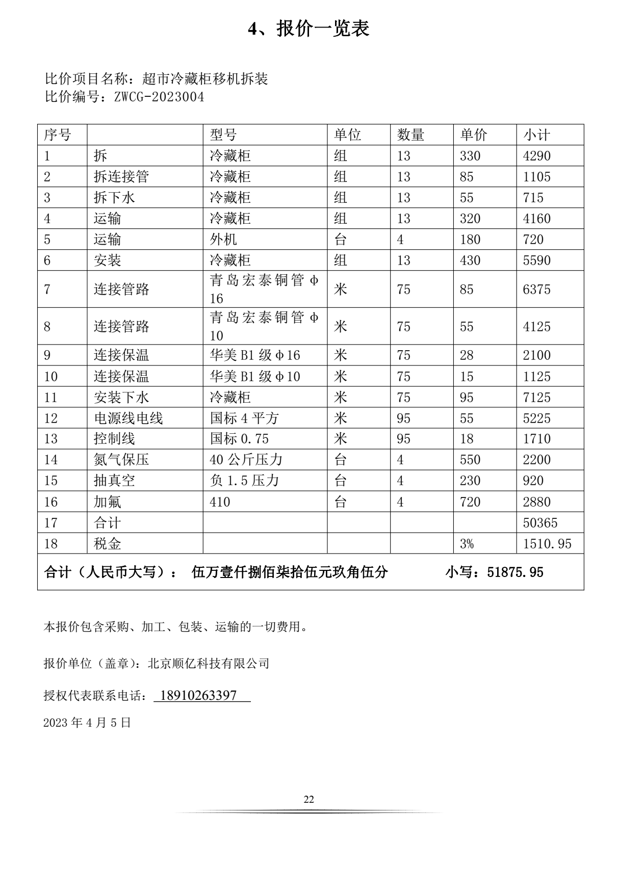 项目名称:伟德国际唯一官网入口沙河校区优购超市搬迁改造-超市冷藏柜移机拆装项目