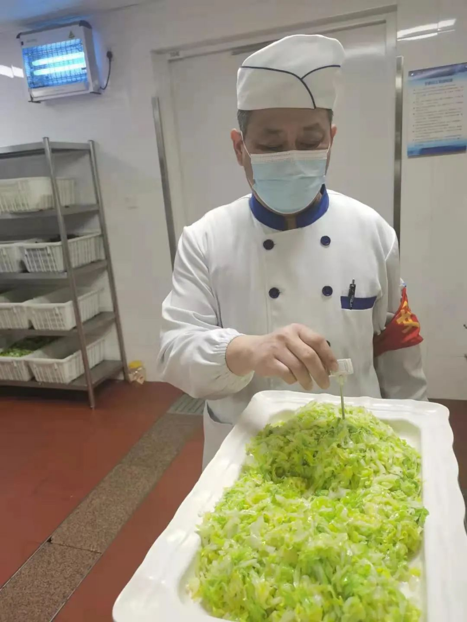 食堂的日常工作本就是忙碌的,任林作为一名厨师长,因岗位需要,已经连续两年未能回过老家,今年父亲病重,原本计划春节回家看望父亲的他,被突如其来的疫情打乱了脚步,面对留在食堂保障供餐和回家看望照顾病重父亲的两难选择,身为党员和骨干员工的他毅然选择了前者,义无反顾的投入到北航校园抗疫工作之中,坚守岗位为留校师生打理好每一餐饭菜。因为他知道“疫情就是命令,防控就是责任,作为一名党员,更要时时处处自觉发挥以身作则、爱岗敬业、服务群众、乐于奉献的先锋模范作用,以实际行动践行初心,担当使命。