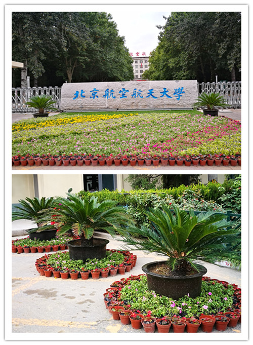为迎接党的十九大的胜利召开以及北航65周年校庆的到来,按照后勤保障处领导的要求,对校东门进行花卉装饰。由于时间紧,且现正处于用花高峰期,花卉采购比较困难.物业中心接到任务,立即安排花坛摆放工作,联系花卉供...