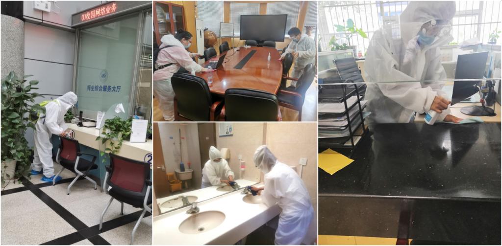 后勤保障处集中对校内机关办公场所做一次性全面消杀,保障教职工健康安全